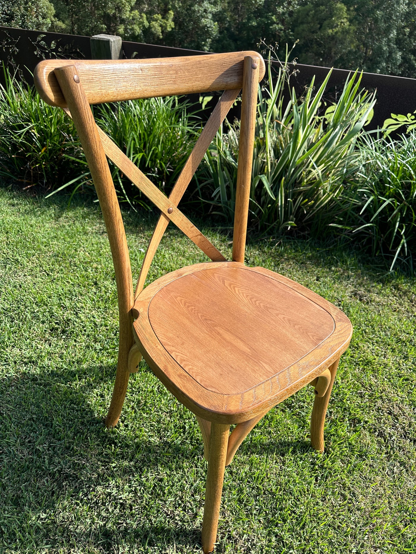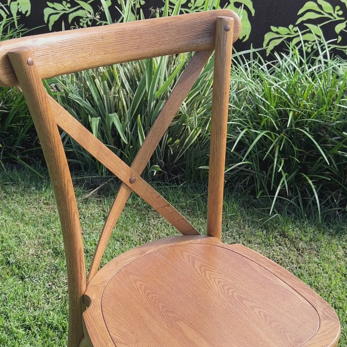 Inspired by the French and Parisian chic style, the Cross back Bentwood Chair is an elegant design with a classic oak wood finish and will look amazing in either your lounge or an event.