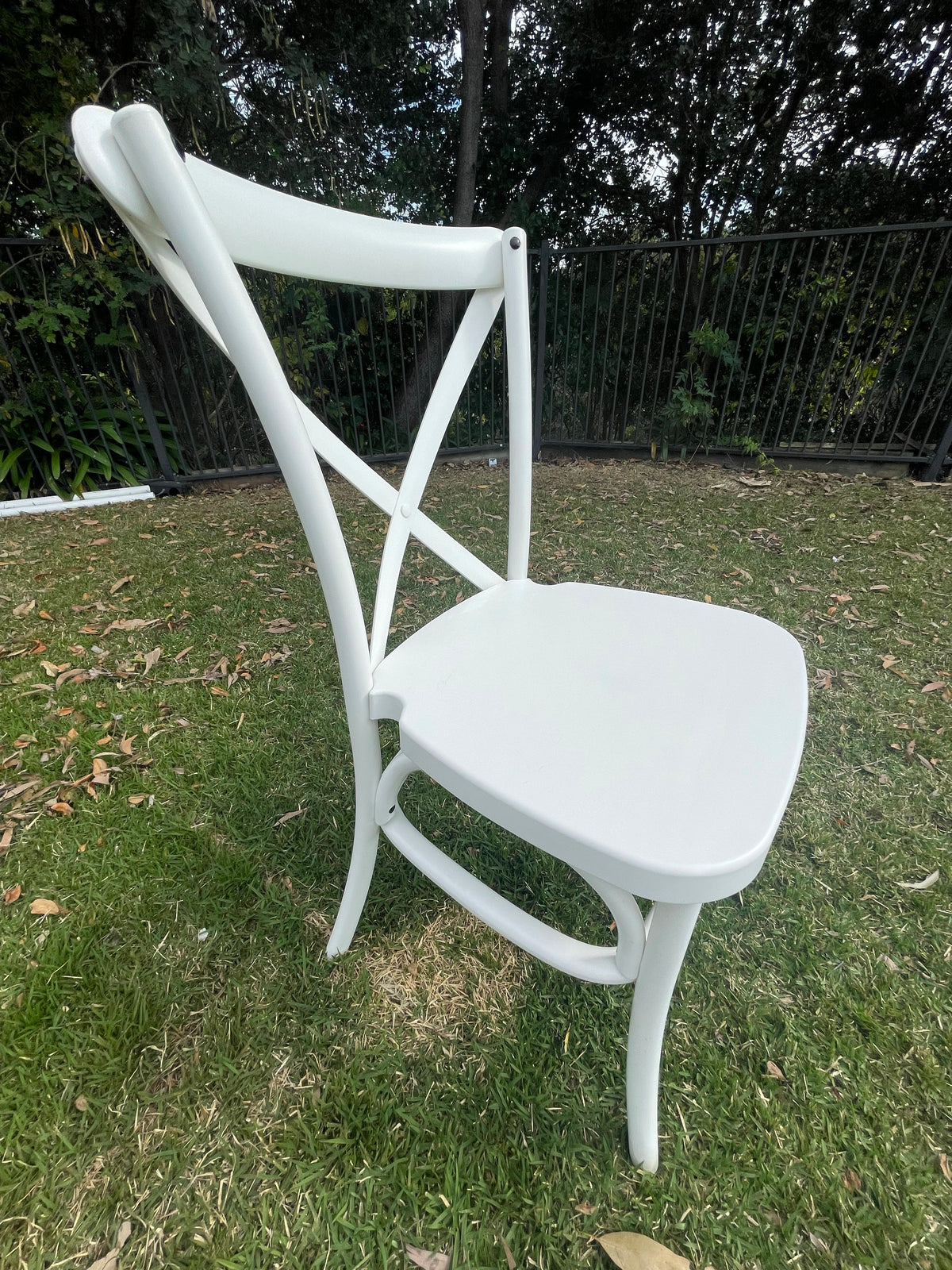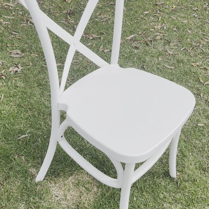 Inspired by the Hampton style Cross back Bentwood Chair is an elegant design with Durable Resin white finish and will look amazing in either your lounge or an event.