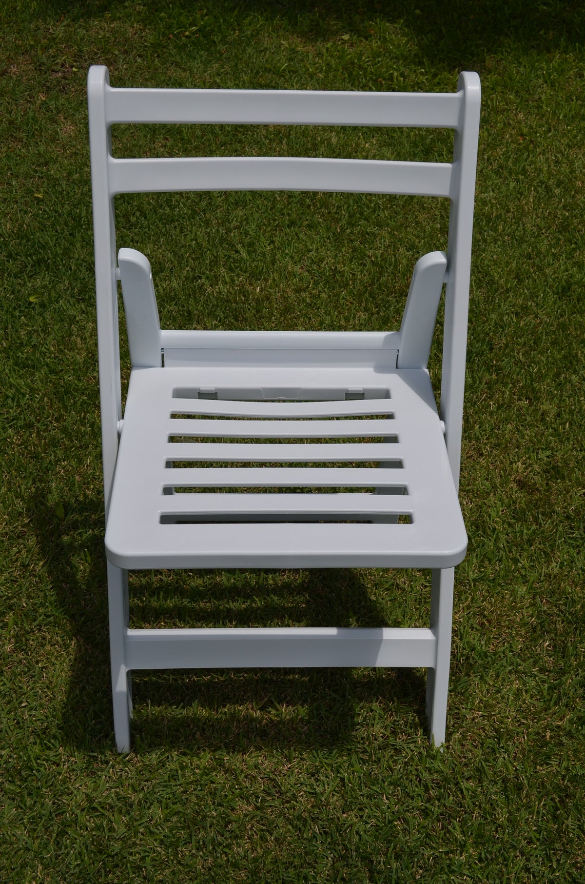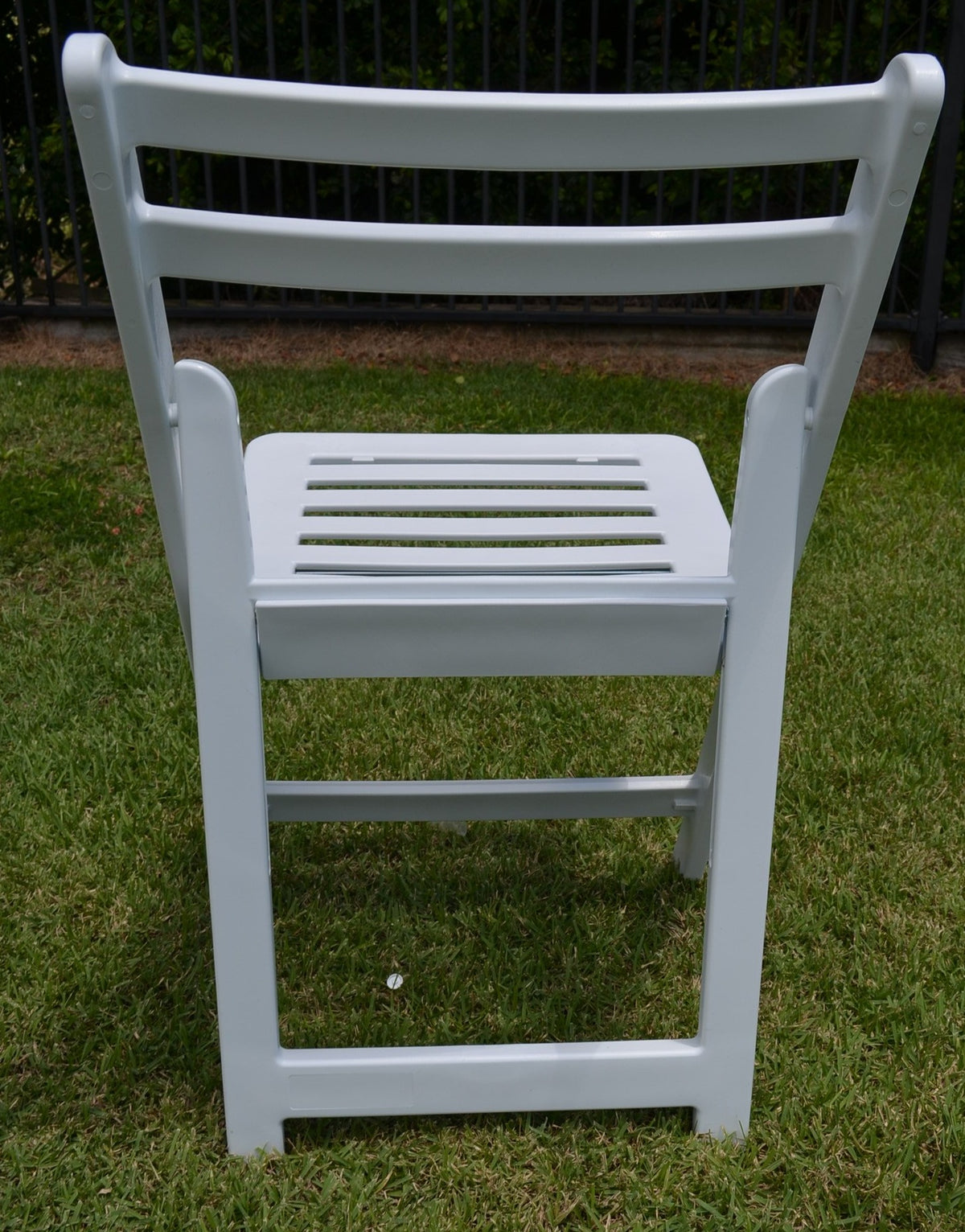 Setting up the White Slatted Americana Chair is a breeze. To set up all you need to do is unfold and you are ready to go. These chairs are made from 100% resin (no metal inserts) which makes them very light weight but still able to hold substantial weight. Due to their lightweight structure they are super easy to transport. When the party is over and it is time to pack up they are very compact to store. These chairs have a unique interlocking system so they can be stacked up and stored for the next event even if you have limited space.