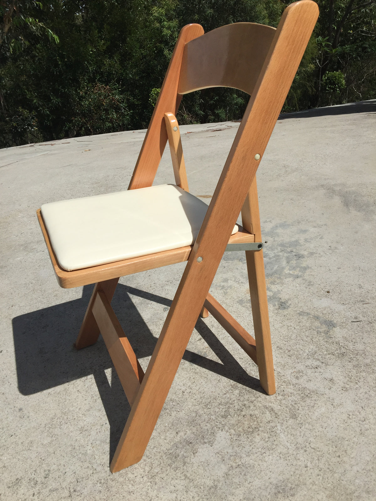 The Timber Folding Chair with an off white (Ivory/Cream) padded seat is a chair that will set your event apart.