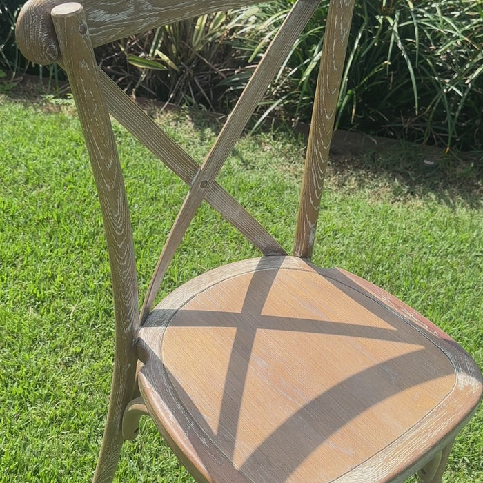 Inspired by the French and Parisian chic style, the Cross back Bentwood Chair is an elegant design with a classic oak wood finish and will look amazing in either your lounge or an event.